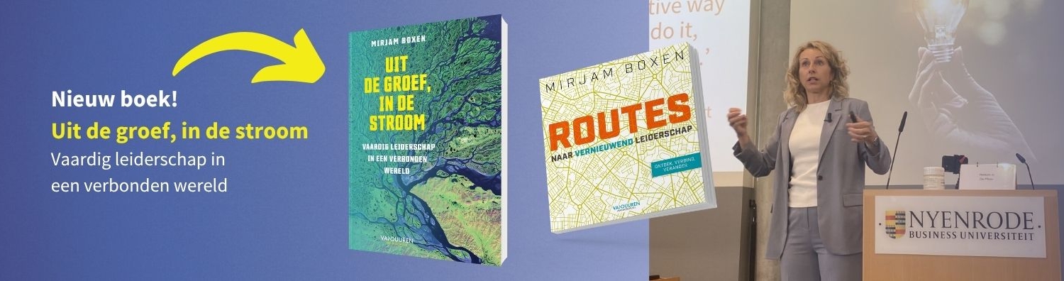 Drie jaar na het verschijnen van mijn eerste boek Routes naar vernieuwend leiderschap, verscheen in juni 2025 het vervolg: Uit de groef, in de stroom – vaardig leiderschap in een verbonden wereld. Dit nieuwe boek schreef ik voor leidinggevenden die voelen dat de oude manier van leiden niet meer werkt. Die aan vernieuwing willen bijdragen, niet vanuit controle of ‘operationeel meesturen’, maar vanuit verbinding.